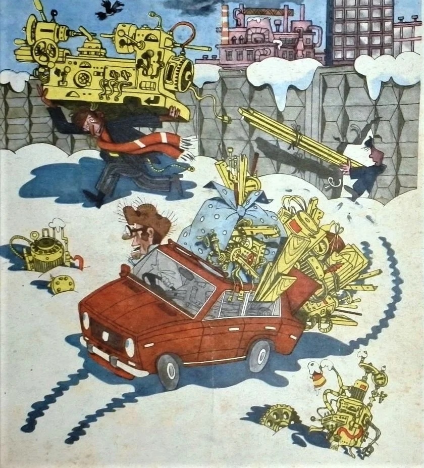 И тут подходят к нему двое мужчин, сидели в 10 метрах от него, показали какую-то ксиву. Спрашивают, почему он находится в рабочее время в столовой, где работает, есть ли путевка и т.д. В общем, на первый раз отвертелся, простили. Предупредили, чтобы в столовую раньше 12-00 не заходил, а сидел и ждал начала обеда в машине. Вот такая была жизнь и Андроповские законы. Предлагаю посмотреть и обсудить юмористические сюжеты из журнала "Крокодил" того нелегкого времени.